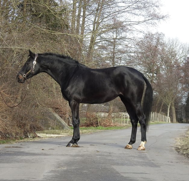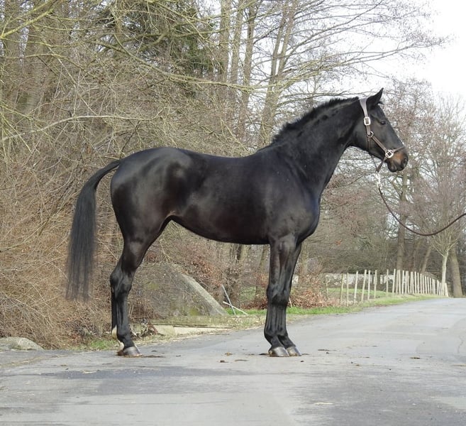 ❗️Due to the high volume of inquiries, we kindly ask that all questions be made by phone only.❗️ For sale is a 6-year-old mare with an approximate current height of 16.1 hh. The mare comes directly from the breeder and is very well-behaved and uncomplicated in turnout. She has been ridden for leisure and is now being sold due to a reduction in herd size. We will not send videos of our horses without prior phone contact, so please refrain from requests such as "please send video." Viewings are available at any time. 0171 530 33 40