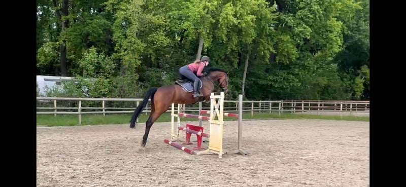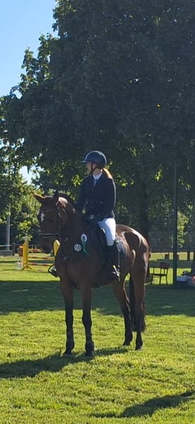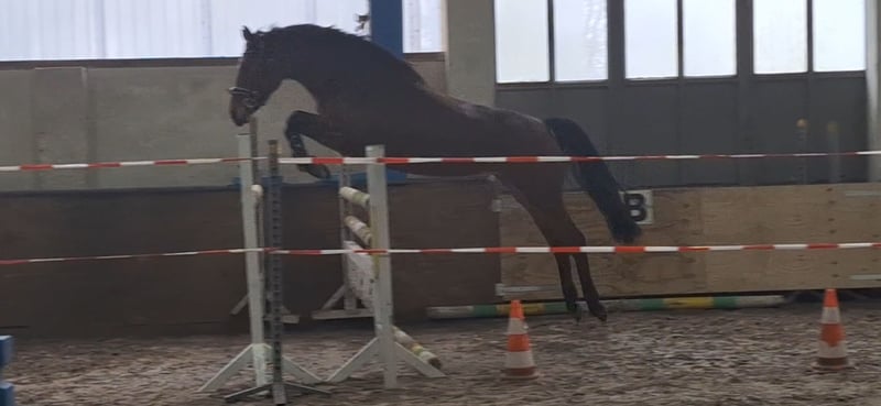 Zum Verkauf steht diese 6 jährige Stute Doerthe von Dembele L x Cayetano L. Wir haben sie damals als Fohlen gekauft und sie ist mit einer gleichaltrigen Stute auf der Wiese mit täglichem Menschenkontakt aufgewachsen. Doerthe wurde schonend Mitte 2023 angeritten. 2024 hat sie ihre ersten Turniererfahrungen gemacht. Sie zeigt kein guckiges Verhalten und möchte immer auf die andere Seite. Die Stute lässt sich dressur- und springmäßig gut arbeiten und ist lernwillig. Auf dem Turnier ist sie bis Springpferde L platziert und im Sommer für die Kreismeisterschaft eine Mannschaftsdressur a* gelaufen, die gewonnen wurde. Sie verzeiht einem jeden Reiterfehler und ist damit ein schönes Verlasspferd bzw. Amateurpferd. Röntgenbilder ohne Befund liegen bereits vor.