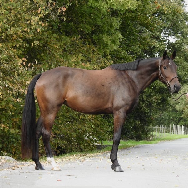 ❗️Wij verzoeken u vanwege de hoge schrijfbelasting uitsluitend telefonisch contact op te nemen.❗️ Te koop is een 6-jarige bruine merrie met een schofthoogte van ongeveer 1,72 m. De merrie komt rechtstreeks van de fokker en is goed gesocialiseerd opgegroeid in een kudde. Ze is tot nu toe uitsluitend recreatief gereden door amateurs en kinderen, waarbij ze zich te allen tijde en ook in nieuwe situaties altijd brave gedraagt. Buitenritten, zowel alleen als in groep, zijn haar ook bekend. In de dressuur mag ze graag verder ontwikkeld worden, met de nodige basisgangen voor het grotere vierkant is ze zeker uitgerust. Zonder voorafgaand telefonisch contact zullen we geen video's van onze paarden versturen, daarom verzoeken we u om aanvragen "stuur video" te vermijden. Bezichtigingen zijn op elk moment mogelijk. Voor verdere vragen zijn we telefonisch bereikbaar op 0171 530 33 40. Alle rechten op de afbeeldingen behoren toe aan Sport- en Recreatiepaarden Wilfried Oestersandforth. Verspreiding of publicatie is strikt verboden.