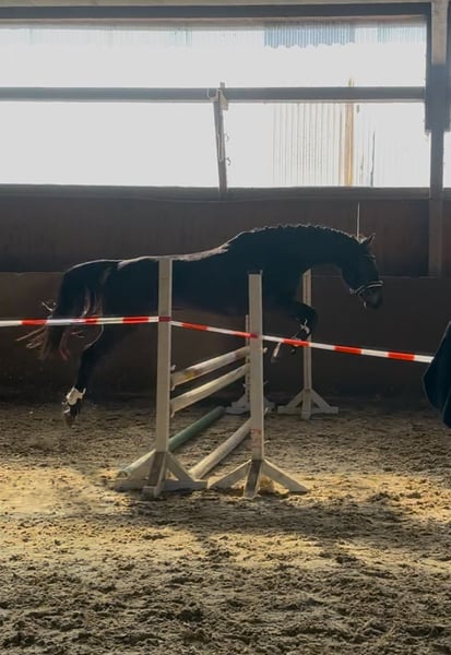 Liebe Pferdemenschen, ich möchte meine 6jährige Stute (2019 geboren) schweren Herzens verkaufen. Die Rappstute ist ca. 1.60 m groß mit einem Erscheinungsbild, das direkt ins Auge sticht. Im täglichen Umgang ist sie immer händelbar, schmiedefromm und zeigt sich beim Verladen sowie während des Transports ruhig und zuverlässig. Sie kennt Auswärtstraining und Lehrgänge, war bereits im Ostseeurlaub mit Strandritten, auf einem kleinen Turnier, bei Spaßwettbewerben sowie im Rahmen eines Reitabzeichen-Lehrgangs unterwegs. Sie wurde spät angeritten, durfte dann noch etwas Pause genießen und ist nun seit etwas über einem Jahren regelmäßig unterm Sattel. Dabei konnte Sie schon in den Anfängen der Dressur, im Springen und auch im Gelände gefördert werden. Nun ist der perfekte Zeitpunkt, um ihr Potential weiter zu fördern. Da sie ihren Ausbildungsstand noch festigen muss und Sicherheit braucht, ist sie kein Anfängerpferd. Als sensibles Pferd benötigt sie einen Menschen mit Feingefühl, Ruhe und Geduld, um ihr Potential abrufen zu können. Da sie noch jung ist, testet sie auch mal und braucht jemanden, der ihr Sicherheit vermittelt, sich durchsetzen kann und selbstbewusst reitet. Die Stute war bei uns nicht einmal krank oder lahm. Gesundheitliche Einschränkungen sind nicht bekannt. Eine AKU kann der Käufer gerne durchführen lassen. Sie kann gerne kennengelernt werden und probegeritten/vorgeritten werden. Aktuell befindet Sie sich zur Verfügung in Beritt und wurde dort durch eine tolle Reiterin sehr gut vielseitig ausgebildet, so dass sie jetzt bereit ist von einem ambitionierten Reiter oder Reiterin weiter gefördert zu werden. Für die Vorstellung mit Probereiten fällt eine Probereitgebühr von 50€ an, die natürlich bei Kauf verrechnet wird. Für alle weiteren Fragen, melden Sie sich gerne per Nachricht! Standort des Pferdes Region Mühlenbecker Land.