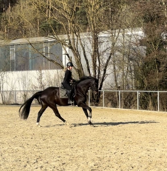 7-jährige DSP-Stute (Bossanova x Köpenick), ca. 172 cm, schwarzbraun – Siegerstute SLP – in liebevolle, erfahrene Hände abzugeben. Sehr menschenbezogen, brav im Umgang, schmiedefromm sowie alleine gelände- und straßensicher. Eine bildhübsche Stute mit viel Qualität und Ausdruck, die auf dem Platz schöne Ansätze zeigt, wenn sie körperlich locker arbeiten kann. Aktuell eher als gehobenes Freizeitpferd mit viel Gelände und dosierter Platzarbeit zu sehen, nicht als klassisches Turnierpferd. Sie ist sensibel und benötigt Zeit, Geduld sowie ein durchdachtes Management, da körperlich nicht immer alles perfekt ineinandergreift. Sie benötigt ein angepasstes Trainings- und Fütterungsmanagement und ist daher kein Pferd für häufig wechselnde Konzepte. Mit Ruhe, Zeit und dem passenden Management kann sie ein gutes Reitpferd sein – sie hatte bereits längere Phasen, in denen sie sehr konstant und problemlos lief. Dennoch wird es vermutlich immer wieder auch anspruchsvollere Phasen geben, mit denen man umgehen können sollte. Verladen ist grundsätzlich möglich, erfordert jedoch konsequentes Training, Erfahrung und sollte kein häufiger Bestandteil des Alltags sein. Abgabe schweren Herzens, da ich ihr aktuell zeitlich und vom Management nicht gerecht werde. Nur in fördernde, verständnisvolle Hände.