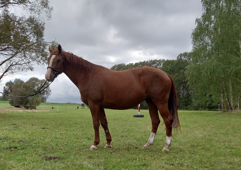 DSP mare / breeding mare - 7 years old - registered in Stud Book 1 - farrier-friendly - accustomed to dogs - used to cattle - together in the pasture - knows groundwork, lunge, double lunge - rides all gaits with the bicycle - started under saddle at walk - regularly vaccinated and dewormed