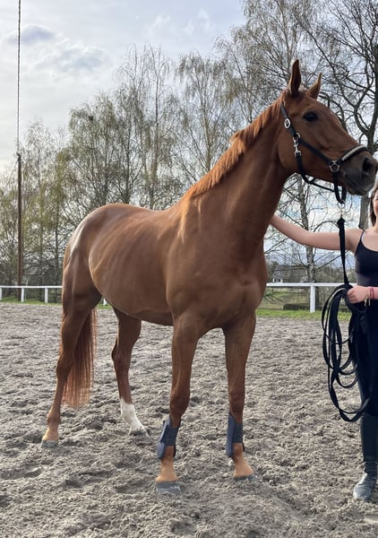 Wunderschöne deutsche Sportpferdestute im Alter von 8 Jahren, mit hervorragender Abstammung: Von Itunago xx und Flying Alpha (nach Fighting Alpha). Ein Pferd mit großem Herz, ausgeprägtem Charakter und im Alltag äußerst unkompliziert. Sie hat bereits eine fehlerfreie Runde in der Klasse 1 absolviert und zeigt viel Talent für Springen und Dressurarbeit. Im Gelände geht sie allein oder in der Gruppe, bleibt ruhig und aufmerksam. Sehr brav bei der Pflege (Scheren, Waschen, Schmied), reitet und reist einwandfrei im Hänger. Unter dem Sattel ist sie entspannt und konzentriert, zeigt aber bei Bedarf Energie und Reaktionsfähigkeit, insbesondere bei Turnieren. Eine liebenswerte, ausgeglichene Stute, ideal für Reiter, die Spaß haben und selbstbewusst Fortschritte machen möchten — für Freizeit, Training oder Turnier im Verein. Sie hat bereits einmal gedeckt, ist eine sehr gute, aufmerksame und unkomplizierte Mutter.