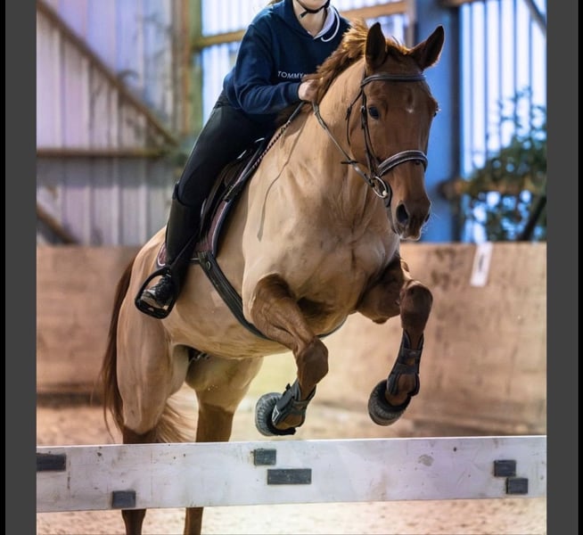 Magnifique jument Deutsches Sportpferd de 8 ans, issue d’excellentes origines : Par Itunago xx et Flying Alpha (par Fighting Alpha). Cheval au grand cœur, doté d’un mental exemplaire et très facile au quotidien. Elle a déjà tourné en Club 1 sans faute et montre de belles aptitudes pour le saut et le travail sur le plat. En extérieur, elle sort seule ou en groupe, reste calme et à l’écoute. Très sage aux soins (tonte, douche, maréchal, etc.), monte et voyage parfaitement en van. Sous la selle, elle sait être détendue et appliquée, tout en ayant du jus et de la réactivité quand il faut, notamment en concours. Une jument attachante, équilibrée, idéale pour un cavalier souhaitant se faire plaisir en toute confiance — loisirs, perfectionnement ou concours club. A déjà pouliné une fois, très bonne mère, attentive et facile.