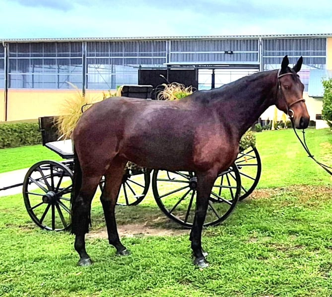 Jument de 8 ans, fille de Borsalino x Samarant (Sandro Hit) Taille environ 1,67 m A eu un poulain Jument élégante, facile à monter Intéressante pour le sport loisirs haut de gamme ainsi que pour la reproduction Bon caractère N’a pas encore participé à des concours, a pris part deux fois à une journée d’équitation. Veuillez uniquement me contacter par téléphone ou WhatsApp au 01735858104.