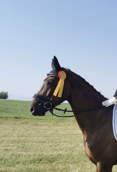 For sale is an 8-year-old, stunning and light-footed DSP State Premium Mare with a heart of gold! This exceptionally beautiful mare impresses not only with her striking appearance but also with her talent and quality. Her calm and straightforward nature, always honest character, and strong willingness to please make her a true dream horse that excites both in daily work and handling. She is equipped with three top-quality basic gaits, which have already been rewarded with high marks in dressage competitions. She has already won in Dressage Horse Class A and has repeatedly placed well at L-level. Traversals and flying changes have been introduced in her daily training. She is developing into an outstanding young prospect with excellent potential for the big arena, having been trained so far by amateurs. Thanks to her loving personality and easy handling, she is also ideally suited for any amateur rider or children. She is currently registered as a competition horse and ready to start riding. Recent X-ray images are available – no findings. (Will be provided upon serious interest.) Feel free to contact us by phone, WhatsApp, or email. johanna.rentschler@web.de 0151 28755752