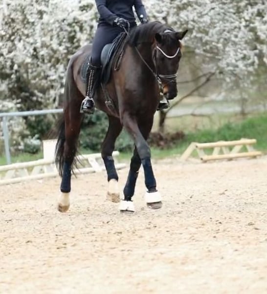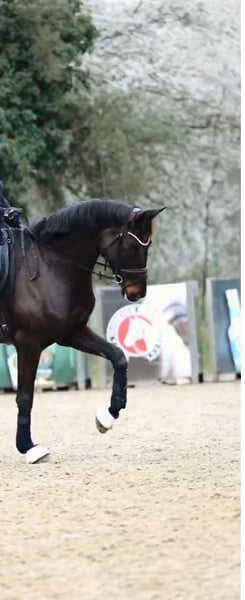 For sale is an impressive German sport mare that captivates with her elegant appearance and versatile abilities. Born in 2018, she impresses with her expressive movement and an impressive height of 16.3 hh. She has an excellent pedigree and is likely to be of interest for breeding purposes as well. This black mare is exceptionally calm and possesses outstanding basic qualities. Due to her lively movements, she is better suited for riders at A-level and above. In the field, she is well-behaved and not easily spooked. She also enjoys pole work and is capable of jumping small courses. Samba has good X-ray results and is in top condition. She has shivering, but this does not affect her riding performance. If interested or for further questions, I am happy to assist. A personal viewing can be arranged by appointment.