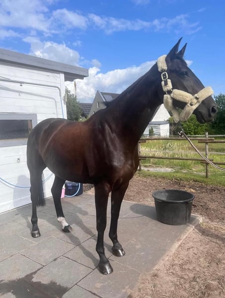 9-jährige lackschwarze sportliche Stute zu verkaufen. Unsere Stute zeichnet sich durch Ausgeglichenheit und Zuverlässigkeit im täglichen Umgang aus. Sie verfügt über viel Vermögen und Ehrgeiz. 2024 hat sie unter einem erfahrenen Reiter Springpferde-L gewonnen sowie Springpferde-M platziert. Wegen aktiver Reitsportaufgabe unserer Tochter (14 J.) suchen wir auf diesem Wege ein neues Zuhause in dem sie weiter gefördert und gefordert wird. Sie steht in gemischter Herde in Offenstallhaltung ist aber auch Boxenhaltung gewöhnt. Sie ist verlade-und schmiedefromm. Regelmäßig entwurmt und geimpft. Unsere Tochter hat in der letzten Saison einige WBO-Erfolge mit ihr erreichen können. Wir weisen ausdrücklich darauf hin, dass die Stute seit Juni 2024 „nur" WBO-Höhe gesprungen ist! Daher wird sie auch ausdrücklich nicht als fertiges Springpferd verkauft. Entweder braucht die Stute in der Ausbildung zum Springpferd einen erfahrenen Reiter oder dient für jüngere unerfahrene Reiter und Reiterinnen eher als Freizeit-/ Hobbypferd mit kleinen Turnierambitionen. Die Stute geht problemlos durch Wasser und springt Geländesprünge (Baumstämme) - daher vielleicht auch für die Vielseitigkeit interessant. Guter TÜV aus 2024 liegt vor (klinisch u. röntgenologisch). Platz vor Preis. Kein Schulbetrieb. Zubehör kann optional mit erworben werden. Täglich telefonisch erreichbar. Weitere Bilder oder Videos auf Anfrage.