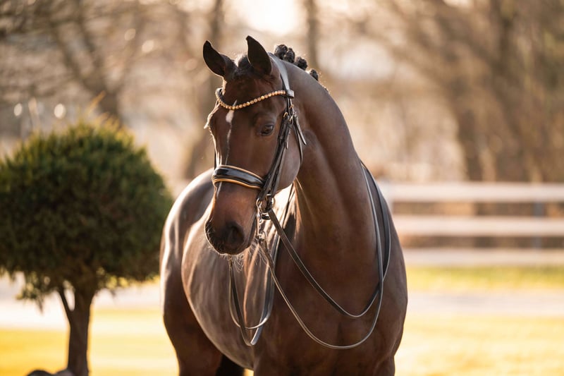 ⭐️Corabelle⭐️ Age: 9 years (2017) Height: approximately 16.1 hh Pedigree: For Romance x Ray Ban Training Level: Multiple placements in M* classes X-ray Examination: Good radiographs available For sale is the beautiful dark bay mare Corabelle, an impressive daughter of For Romance, who convinces with her willingness to perform, rideability, and quality. Corabelle has numerous placements in L and M* classes and is very confident at this level – an excellent partner for riders seeking solid competition experience, with room for further development. Corabelle is 11 years old and presents as a motivated, human-oriented mare that always aims to please her rider and approaches each task with a consistently positive work attitude. She demonstrates excellent collection ability and possesses considerable talent for more advanced dressage work. Piaffe has already been introduced both in hand and under saddle – she has embraced this movement with potential and shows promising signs for more. But Corabelle’s talents are not limited to the dressage arena: she also enjoys jumping and is very versatile overall. Additionally, she is familiar with cross-country terrain and is super well-behaved and uncomplicated in handling. Another quality feature: Corabelle has successfully completed her mare performance test, further highlighting her talent and character. Thanks to her highly interesting pedigree, she is also an exciting prospect for breeding. Corabelle is a mare that brings joy, cooperation, and daily proof of her heart and quality to her human partner.