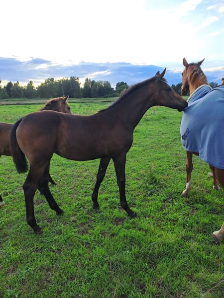 Royal Escanta is a strong-moving, large-framed, typy filly by Escanto PS. Her mother is a performance-tested state premium mare by Morricone, and she was also born here on our farm, just like her grandmother, who is also a state premium mare. Escanta is absolutely friendly, completely fearless, and is currently growing up in a small herd in a loose housing system. At the foal inspection, she received the foal premium and qualified for the foal championship in Neustadt Dosse. If you are interested, please feel free to request more information at 0151 25296055. The sale is directly from the breeder.