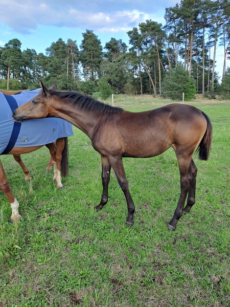 Royal Escanta ist ein bewegungsstarkes großrahmiges typvolles Stutfohlen von Escanto PS. Ihre Mutter ist eine leistungsgeprüfte Staatsprämienstute von Morricone, auch sie ist hier auf unseren Hof geboren wie auch ihre Oma ebenfalls eine Staatsprämiestute. Escanta ist absolut umgänglich, total unerschrocken, wächst momentan in einer kleinen Herde in Offenstallhaltung auf. Zur Fohlenschau erhielt sie die Fohlenprämie und konnte sich für das Fohlenchampionat in Neustadt Dosse qualifizieren.. Sollte Interesse bestehen gerne mehr Informationen unter 0151 25296055 Abgabe erfolgt direkt vom Züchter.