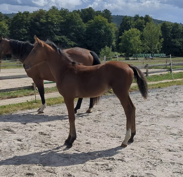Aus eigener Zucht bieten wir dieses typvolle, schicke und sportliche Stutfohlen mit korrektem Fundament an. Vater Chaloubino PS war erfolgreich in internationalen Youngstertouren vertreten und im Finale der Springpferde-WM in Lanaken/BELbelegte er den siebten Platz. Außerdem hat er mit Cento und Baloubet du Rouet hochkärtige Springgenetik in seinem Pedigree vorzuweisen. Die Mutter wurde bis 105 cm vorgestellt. Ihr Vater Jama van de Heffinck war bis S** erfolgreich. Nähere Infos und Videos gerne per WhatsApp!!!