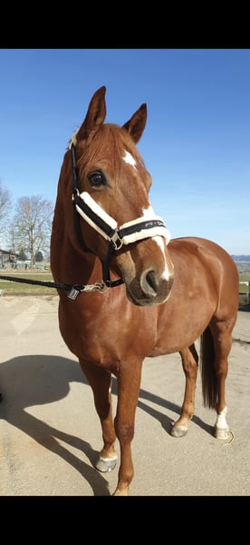 My beautiful gelding (11 years old, approximately 16.1 hh) is looking for a loving forever home. He is a true heart horse with a dream character – honest, affectionate, and always eager to please his rider. Training: - Dressage up to L level - Jumping up to A level He has not competed in recent years but is registered for competitions. He is absolutely well-behaved in handling, loading, and farrier visits, and consistently reliable. As he requires an experienced and confident rider, he is not suitable for beginners. The sale is due to personal reasons. Trial rides possible by arrangement, fee €30 (deductible upon purchase). Please contact me for more information. I wish him a home where he will be supported and loved with heart and understanding. Videos and additional pictures available upon request.