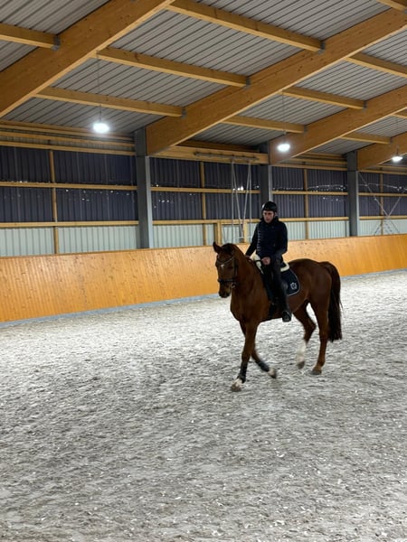 Aufgrund Bestandsverkleinerung müssen wir uns leider von unserem geliebten Fuchswallach trennen. Danny ist ein sehr lieber und verschmuster Wallach. Im Umgang sehr entspannt, mit ein paar kleinen Macken. Aufgrund seiner sehr guten Abstammung verfügt Danny über 3 Hervorragende Grundgangarten mit sehr viel Schwung. Zu Beginn der Arbeit benötigt er etwas Zeit, aber dann hat man super Spaß ihn zu reiten. Er ist kein Buckler oder Steiger. In der Dressur ist er auf gutem A Niveau auf dem Weg zu L, mit sehr guten Turnierergebnissen. Platz vor Preis. Für nähere Informationen kontaktieren Sie mich bitte unter 0151-52583628.