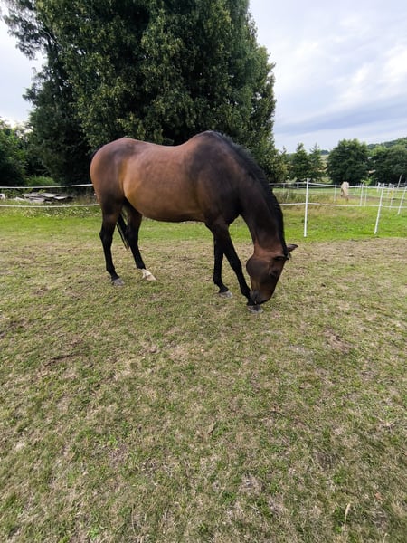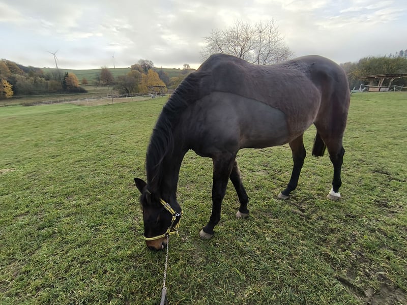 Großrahmiger Deutsches Sportpferd Wallach – sensibler Partner mit Herz Schweren Herzens biete ich meinen selbst ausgebildeten Wallach zum Verkauf an. Er wurde am 30.04.2010 geboren, hat ein Stockmaß von ca. 1,75 m und ist im Deutschen Sportpferd eingetragen. Sein Vater ist Skyman (Landgestüt Moritzburg), die Mutterlinie führt über Amerigo Vespucci xx und Esprit. Mein Wallach ist bei uns geboren – ich kenne ihn seit seinem ersten Tag. Ich war sogar beim Decken seiner Mutter dabei und habe auch seine Mutter selbst geritten. Er ist also komplett in einer Hand aufgewachsen und wurde von mir persönlich ausgebildet. Seine gesamte Geschichte ist bekannt. Wir sind bereits A springen gestartet und im Training L-Springen gesprungen. Außerdem ist er sehr sicher im Gelände und macht dort besonders viel Spaß. Er ist ein sportlicher, eher sensibler Wallach, der eine feine Reiterhand und eine feste Bezugsperson schätzt. Hat er seinen Menschen gefunden, zeigt er sich sehr anhänglich und mit einem Herz aus Gold. Bei Stress kann er zu Kotwasser neigen. Tierärztlich wurde bisher keine körperliche Ursache festgestellt. Aktuell wird er hauptsächlich im Gelände geritten, da uns momentan keine andere Trainingsmöglichkeit zur Verfügung steht. Ich wünsche mir für ihn einen liebevollen, dauerhaften Platz bei Menschen, die seinen sensiblen Charakter zu schätzen wissen. Platz vor Preis.