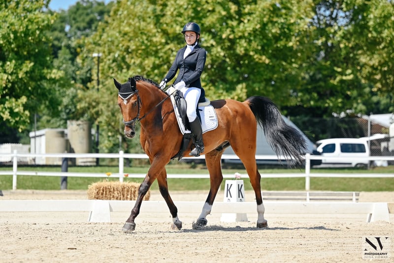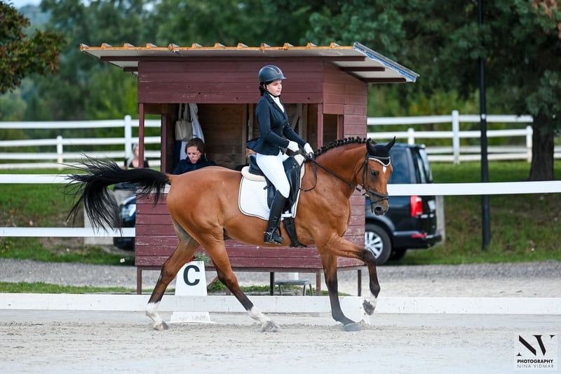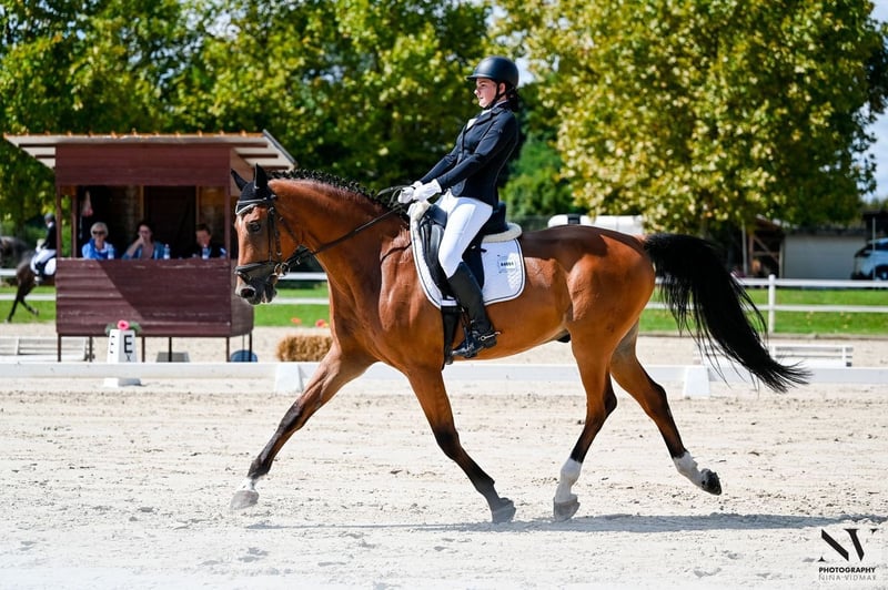 Pearl Harbor, known as Tizio, is a 2008 German Warmblood, trained to Medium (M) level. He has extensive competition experience, including Slovenian Cups, national shows, and international competition in Italy. He has an exceptionally calm, stable, and trustworthy temperament, making him suitable for complete beginners, children, as well as advanced riders. He is currently used in a riding school, ridden by a wide variety of riders. Tizio is not spooky at all – confident alone or in a group, safe in traffic, around trucks, water, tents, wind, etc. Very easy for transport and excellent on the trailer. He is used to both turnout/paddock life and stable (box), lives well in a herd, and adapts easily. ✅ Healthy, never injured ✅ Vet check completed in 2021 ℹ️ He has crib-biting, which has significantly improved with proper management and regular work; when occupied, he does not do it. 🎒 Full equipment included (custom-fitted saddle, bridle, and additional tack). Feel free to contact me for more information or to arrange a viewing 😊
