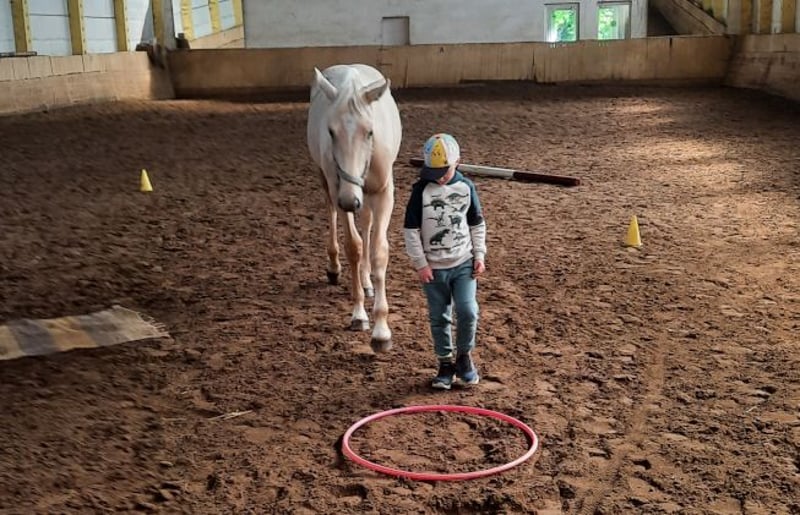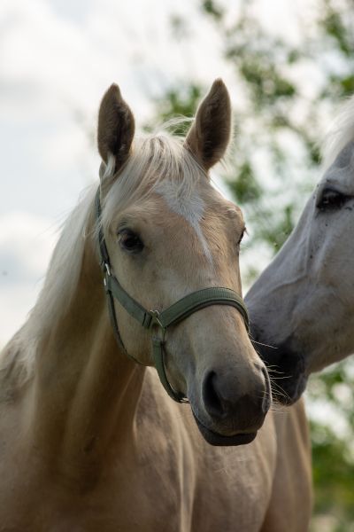 Bright Benicio (Spitzname "Brighty") ist ein unglaublich sympathischer Kerl mit korrektem Gebäude und sehr guten Grundgangarten, für die er zur DSP-Fohlenschau in Neustadt/Dosse 2024 mit einer Prämierung und der Championatsqualifikation belohnt wurde. (Zum Championat konnten wir aus organisatorischen Gründen nicht fahren.) Er ist halfterführig und kennt bereits Spaziergänge im Wald und spielerische Bodenarbeit mit Gymnastikball und Co. Er ist dabei sehr aufgeschlossen und artig. Aktuell lebt er in einer Wallachherde in Aktivstallhaltung und verführt dort Alt und Jung zum ausgiebigen Spielen. Brighty wurde im März 2026 kastriert. Er wird regelmäßig geimpft und entwurmt und ist unkompliziert beim Schmied und Tierarzt. Über Benicio-Blut bringt Brighty ausgezeichnete Dressur- und Rittigkeitsveranlagung mit. Die Sonderfarbe Palomino ist ein zusätzlicher Bonus, der ihn zu einem absoluten Hingucker macht. Vater Ben Benicio ist momentan auf Erfolgskurs und sammelt Siege und Platzierungen in Dressuren der Klasse S - inzwischen auch auf internationalem Niveau. (Kaufpreis versteht sich inklusive Mwst. Ein Rabatt kann gewährt werden, wenn Bright Benicio für eine vereinbarte Mindestdauer Pensionspferd bei uns bleibt. Preis steigt natürlich mit Alter und Ausbildungsstand.) Fotos sind vom letzten Jahr - aktuelle folgen zeitnah.