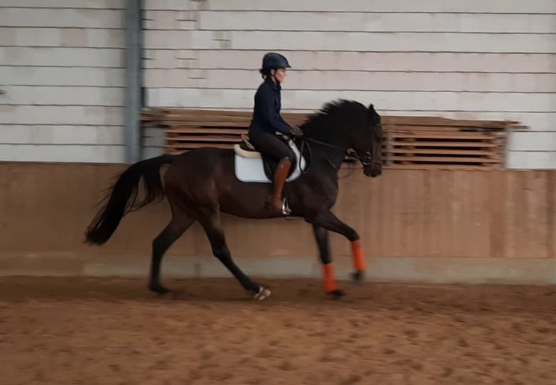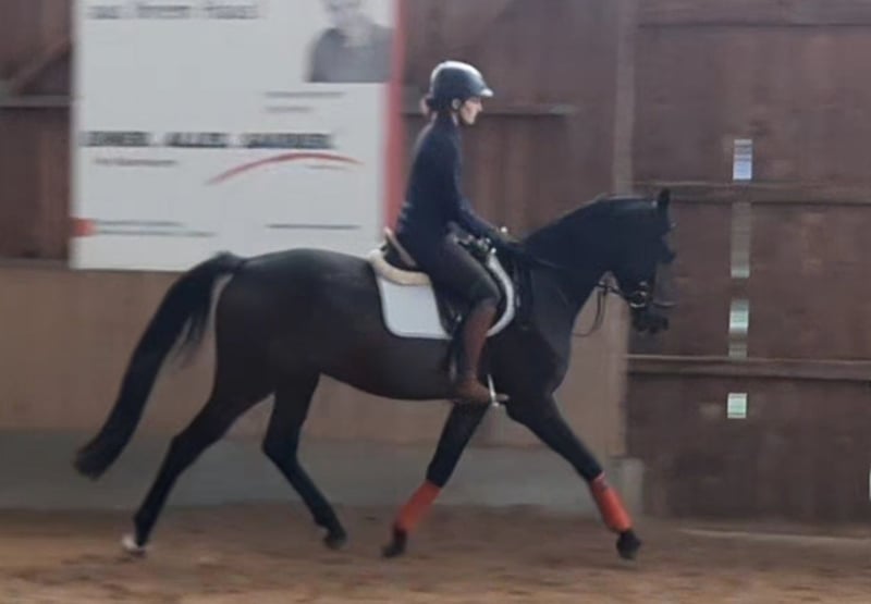 À vendre, le hongre de 3 ans "On Air B" alias Olli. Vendu en raison de la réduction de l'effectif. Il a été récemment monté, il se comporte bien en longe, connaît le travail en liberté et le saut en liberté. Actuellement, il est encore au paddock d'été avec le groupe de hongres, mais il rentre au box le soir. Le prix varie en fonction du niveau de formation. Dans les interactions quotidiennes, comme l'attache, le pansage et la conduite, il est très gentil et ouvert. Il s'entend parfaitement avec d'autres hongres. Il a été régulièrement vacciné et vermifugé, et a également été vu régulièrement par le maréchal-ferrant. Un contrôle vétérinaire peut être effectué sur demande. Pour toute question, veuillez appeler. Sa mère "St.Pr.St. Le Casira B" a été présentée dans des épreuves de saut d'obstacles de niveau M et a remporté l'examen de performance à 3 ans, participant à des compétitions jusqu'à 120. Sa grand-mère "St.Pr.St Leona Lewis" par Ludwig von Bayern porte le titre de jument primée DSP en élevage. Tous ses poulains sont des poulains primés. Ses deux filles sont également des juments primées d'État. La sœur de la mère "Lia Casira B" a été la jument réservée lors du championnat des juments saxonnes-thuringiennes à Wolfersdorf, avec des notes de 9,5 en saut en liberté. Elle a déjà eu un poulain de vente à la vente élite DSP à Darmstadt-Kranichstein. Tous les chevaux de la lignée maternelle sont bien élevés et faciles à manipuler. Aucun problème non plus lors de la montée.