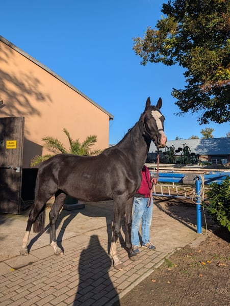 🌟 Promising Youngster with Top Pedigree – Gelding by Fair Deal x De Janeiro 🌟 Hohenbocka Riding Stable presents For sale is a promising, well-built gelding born in 2023, bred in the German Sport Horse studbook. This young colt impresses with his modern appearance, balanced temperament, and excellent movement quality. His sire, Fair Deal (by Franklin – Fürstenball), is one of the most exciting young sires in modern dressage breeding. He stands for rideability, expression, and outstanding basic gaits. On the dam’s side, through De Janeiro (by De Niro – Weltmeyer), he carries proven dressage genetics known for willingness to perform, rhythmicality, and a clear head—an ideal combination that appeals to dressage riders. 🔹 Pedigree: Fair Deal x De Janeiro 🔹 Year of Birth: 2023 🔹 Breeding Region: German Sport Horse 🔹 Color: Black 🔹 Height: Currently approx. 16.1 hh 🔹 Location: Hohenbocka Riding Stable, 01945 🔹 Price: Upon request 🔹 Status: Gelding, gelded The gelding is currently in gentle basic training, including lunging and groundwork. In daily handling, he is well-behaved, human-oriented, and eager to learn. He is accustomed to stable, paddock, and turnout, regularly wormed and vaccinated, farrier-friendly, and consistently displays a calm demeanor. With his excellent pedigree, correct conformation, and elastic movement, he has the best prerequisites for a successful future in dressage. 📞 For more information and price details, please contact Hohenbocka Riding Stable at 0172 8978388. A high-quality young horse with great potential—ideal for ambitious riders and breeders who value quality, character, and prospects.