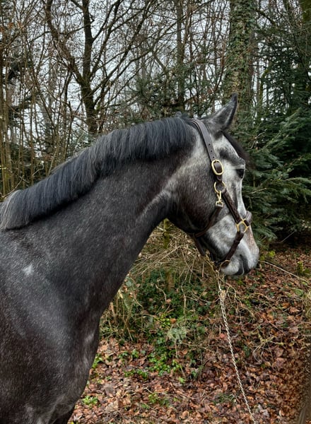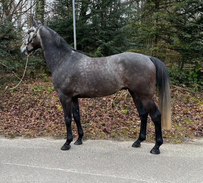 Rakker is a stunning 2021-born gelding standing at 16.1 hh. Not only does he impress visually, but he also has a sweet and gentle temperament. Despite his young age, he is already well-schooled under saddle and can easily be ridden by amateurs. He has a solid basic training, which can naturally be refined further, and this year he competed in his first small show. He was very confident and made a great impression. In the jumping arena, he is not spooky at all and doesn’t shy away from the other side of the course. Thanks to his lively, expressive gaits, we could also imagine him excelling in dressage or eventing. In handling, he is very uncomplicated and affectionate. He is currently barefoot, thanks to his good hoof quality. Rakker has been veterinary-checked and is in good health. If you have any questions or are interested, please feel free to contact me. Videos are available. Please contact only via WhatsApp or call at +49 173 7482545.
