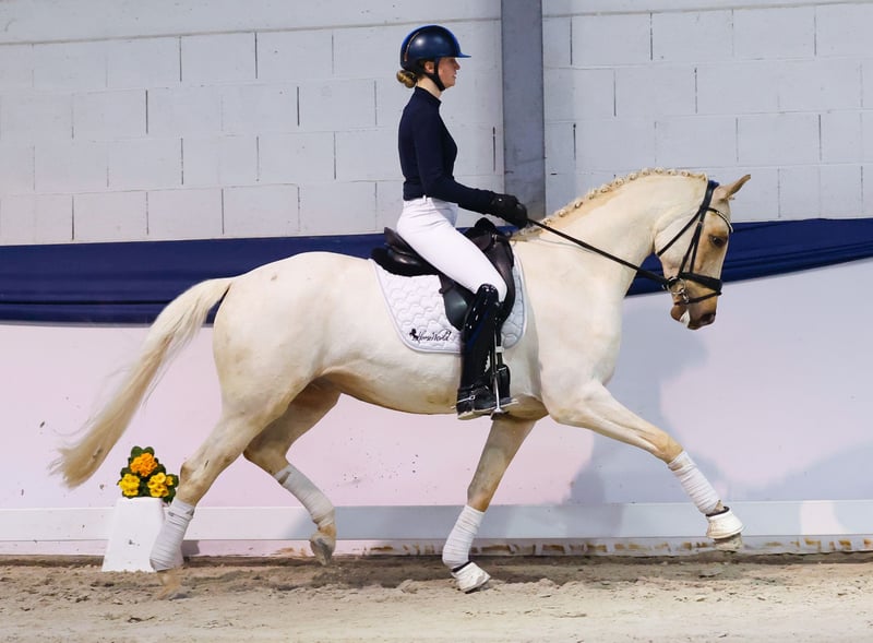 In unserer Kollektion stehen streng selektierte Reitponys f�r alle Anspr�che: Ausbildungs-, Zucht- und Kinderponys Hier gelangen Sie zur Gesamtkollektion: https://ponyforum.auction Ein hochanständiger Palominowallach im begehrten XL-Maß steht mit Gründleinshofs Fürstengold in unserer Kollektion. Dieser fünfjährige Wallach ist ein ganz reell ausgebildetes XL-Pony. Unsere Bereiter mögen sein angenehmes Arbeitstempo und seine unkomplizierte Einstellung sehr! Fürst kennt kein „nein“, er ist immer pro Reiter eingestellt. Er ist ein harmonisch aufgemachter Wallach im passenden Reitpferdeformat. Mit seiner guten Linierung deckt er auch größere Reiter bestens ab! Fürst ist auf sicherem Dressurpferde-A-Niveau ausgebildet und kann auch direkt im Turniersport eingesetzt werden.