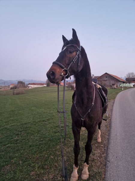 Mega lieber Wallach bereits angeritten. Vielversprechende Abstammung ( Donnerhall, Don Schufro Mütterlicherseits sowie fürst Samarant, For Romace I Väterlicherseits ) Gern vorbeikommen und anschauen 5 Jahre alt Angeritten läuft Schritt Trab Gallopp unterm Sattel, kennt Ausreiten und Bodenarbeit. Zeigt sich steht's bemüht und willig neues zu lernen. Standort Memhölz Rasse: Deutsches Sportpferd Stm: circa 160 cm Preis auf Anfrage Ich muss ihn leider abgeben da ich durch meinen neuen Job nichtmehr so viel Zeit habe.