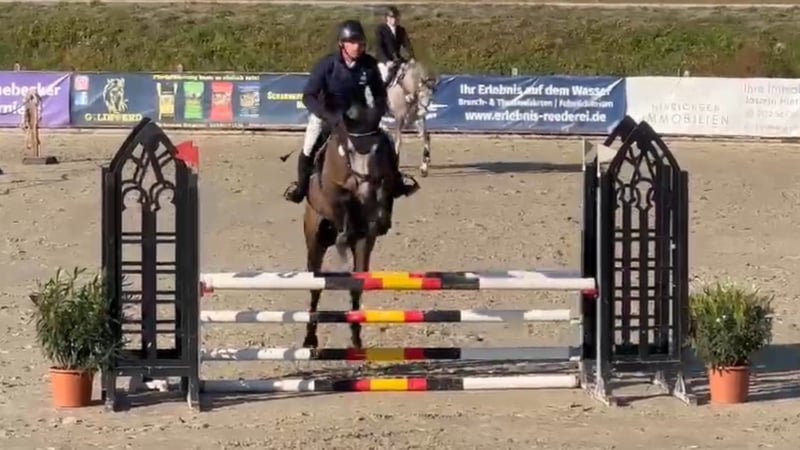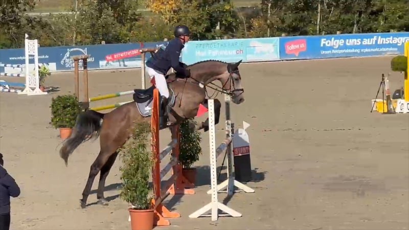 We offer here a promising prospect with all the potential for modern sport. He is a true athlete with a lot of ability and great caution, looking for an experienced rider to develop him into a show jumping star. His pedigree and maternal line are absolutely performance-oriented. The stallions "Gepsom," "Cellestial," and "Askari" are all placed at S*** / 1.50m. From the maternal line, several S-successful horses emerge, such as the licensed stallion "Crossfire," who is the full brother of the mother, or the grandmother "Minette's Akrobatin" herself.