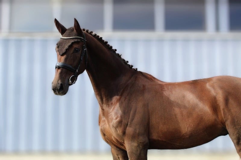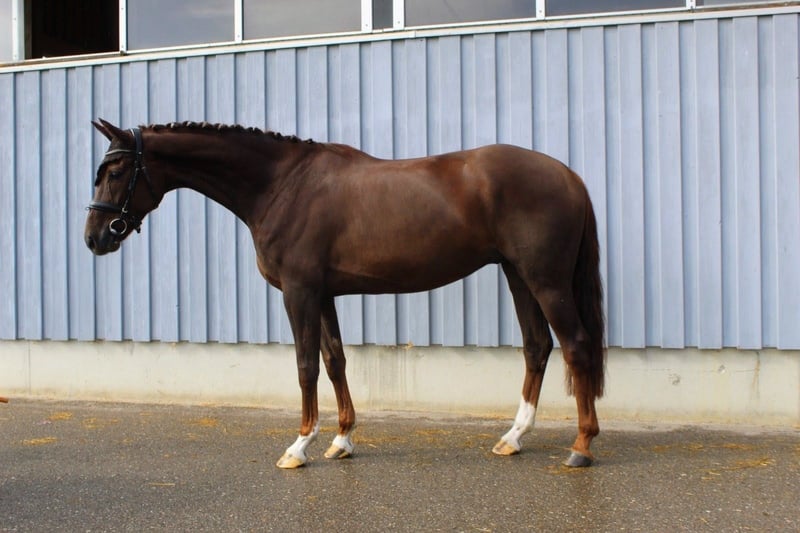 Ein Dunkelfuchs der begeistert - mit wunderschönem Erscheinungsbild, sehr viel Bewegungstalent und außergewöhnlicher Mechanik! 3 sehr gute Grundgangarten zeichnen den hübschen Dressur-Youngster aus. Mit seinem überragenden, raumgreifenden Schritt, schwungvollen Trab mit auffallend schöner Mechanik und seiner sehr großzügigen Galoppade bringt er beste Voraussetzungen fürs Viereck mit. Dazu kommen viel Schulterfreiheit und eine aktive Hinterhand, sowie eine gute Grundrittigkeit und ein sehr angenehmes Maß an "Go". Fein in der Hand und am Bein, super leicht durchs Genick zu reiten. Dabei ist er zu jeder Zeit brav - Unarten wie Bocken, Steigen, sonstiges kennt dieses Pferd nicht. Erst Ende 4 jährig angeritten und im Laufe dieses Jahres schonend grundausgebildet, wartet hier ein echter Rohdiamant auf seinen weiteren Schliff. Fliegende Wechsel sitzen bereits, ansonsten auf solidem Dressurpferde A Niveau. Kleine Sprünge kennt er auch, genauso wie Stangenarbeit. Auch das hochbewährte Pedigree lässt bei diesem Schönling keinerlei Wünsche offen: Vater ''Livaldon'' legte selbst eine Bilderbuchkarriere hin, als überragender HLP Sieger, sowie Qualifikation zum Bundeschampionat der 6-jährigen Dressurpferde und bereits 7-jährig Erfolgen in der schweren Klasse. Doch seine Nachkommen wissen noch mehr zu begeistern als er selbst - z.B. sein Sohn Life Time wurde unter Charlott-Maria Schürmann in Ermelo Weltmeister der 7-jährigen Dressurpferde. Auf der Mutterseite gesellt sich Ausnahmevererber und Bewegungskünstler ''Dancier'' dazu, der über 60 gekörte Söhne vorweisen kann, sowie selbst zweimal das deutsche Berufsreiterchampionat mit Reitmeister Dolf Dietram-Keller gewinnen konnte. Weiter Richtung Großmutter komplettieren mit ''Wolkentanz'' und ''World Cup II'' noch einmal zwei zuverlässige Dressur-Spitzenvererber das Pedigree dieses Dressurnachwuchses. Aufgrund eines kleinen "Hobbys" und nachrückender Nachzucht weit unter Wert abzugeben! Röntgenologisch ohne besondere Befunde.