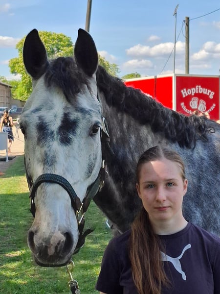 Extreem rittig en mensgericht. Intensief zo'n 14 maanden opgeleid. Zeer veilig en gemotiveerd in het terrein en onbevreesd. Daarom het perfecte paard voor alles wat "buiten" is, zoals buitenritten, jacht, enz. Ook opleiding voor het normale springparcours en de basis voor een zo goed mogelijke rittigheid en gevoeligheid. Geweldige partner voor de toekomst. Momenteel weer een beetje in de groei. Graag komen kijken en proefrijden. De instructrice heeft veel tijd geïnvesteerd om een geweldige partner te vormen. Haribo rijdt fantastisch en ziet er bovendien echt goed uit :-). Ook goed te rijden door minder ervaren ruiters. Haribo heeft ook ervaring met buitenritten op het strand (Oostzee) en is in het algemeen een echte "maat". Voor de juiste ruiter zal het een "zielenpaard" zijn. Samen kunnen jullie door dik en dun gaan. Kan ook nog op de locatie blijven en verder opgeleid worden (in overleg). Geboren en opgegroeid in het Landgestüt Neustadt-Dosse. Gepresenteerd voor de keuring van springpaarden. Te koop in opdracht.