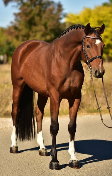 Wyjątkowy niemiecki koń sportowy, urodzony w 2019 roku, o wzroście 168 cm, od My Blue Pleasure z klaczy Cornet Obolensky. Bezpieczny i pewny siebie partner dla jeźdźców amatorów. Obecnie prezentowany na zawodach stowarzyszeniowych do 1,20 m, z dużym potencjałem na więcej. Skacze każde przeszkody z łatwością, nigdy nie zwalnia, nie waha się i daje swojemu jeźdźcowi pewność siebie. Lekki i odważny – zawsze chce się podobać i wspiera swojego jeźdźca w każdej sytuacji. Prawdziwy koń marzeń dla amatorów, o doskonałym charakterze i niezawodnej wydajności. Dostępne są pełne, bez zarzutu zdjęcia rentgenowskie, koń jest zdrowy i w dobrej kondycji. Stacjonuje na Węgrzech i można go obejrzeć oraz wypróbować w każdej chwili. Chętnie pomożemy lub zorganizujemy transport. Filmy i dodatkowe informacje dostępne przez WhatsApp – prosimy o podanie numeru telefonu.