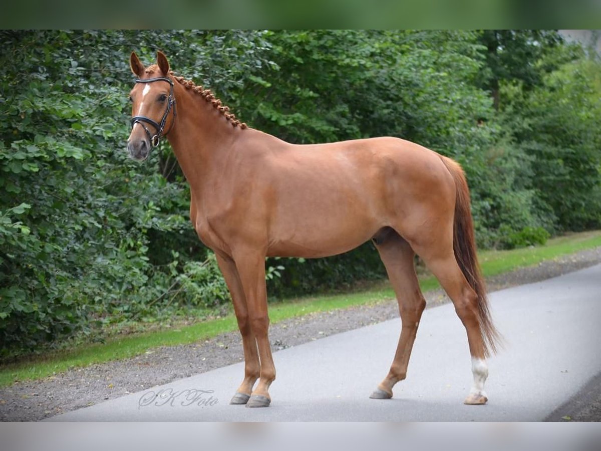 For sale is a stunning, talented gelding born in 2020. This chestnut impresses with his elegant appearance and pleasant temperament. Standing at 16.1 hh, he offers the perfect size for ambitious riders looking to develop further in dressage. The young sport horse convinces with his quality movement, willingness to learn, and potential for competition. He is well-accustomed to dressage work and already demonstrates a good degree of collection and basic gaits. Video available upon request. Please feel free to contact me for more information or to arrange a viewing and trial ride!