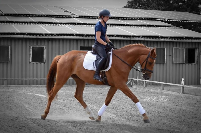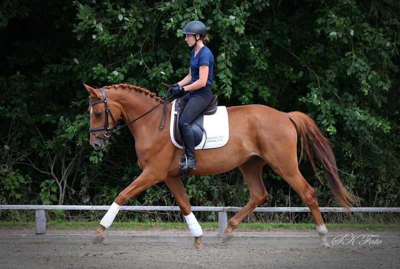 Zum Verkauf steht ein wunderschöner, talentierter Wallach, geboren im Jahr 2020. Dieser Fuchs begeistert durch sein elegantes Erscheinungsbild und sein angenehmes Temperament. Mit einem Stockmaß von 172 cm bietet er die perfekte Größe für ambitionierte Reiterinnen und Reiter, die sich im Dressursport weiterentwickeln möchten. Der sportliche Nachwuchs überzeugt durch seine Bewegungsqualität, seine Lernbereitschaft und sein Potenzial für den Turniersport. Er ist fein an den Dressurarbeit gewöhnt und zeigt bereits viel Versammlung und Grundgangarten. Video auf Anfrage. Bei Interesse oder für weitere Informationen stehe ich gerne zur Verfügung. Vereinbaren Sie einen Termin für eine Besichtigung und eine Proberunde!