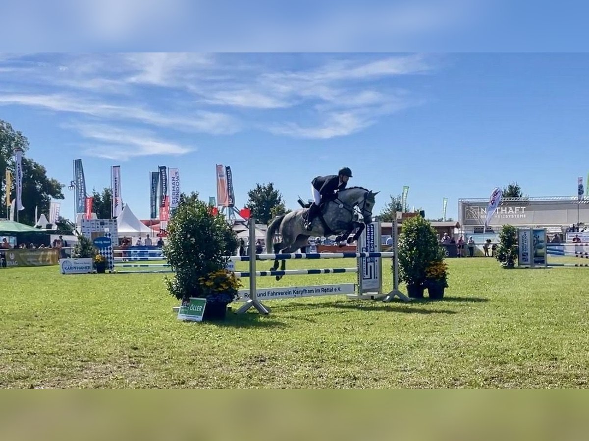 Contarios ist ein 6-jähriger Wallach von Cayado x La Pilot x Daimler. Stockmaß ca. 166cm. Contarios hat bereits vielfach Springpferde A gewonnen und ist mehrfach Springpferde L platziert. Er besticht besonders durch seine hervorragende Rittigkeit und besonders gute Technik am Sprung. Er ist sehr brav im Umgang und kann alleine ausgeritten werden. Auch aufgrund seiner Rittigkeit und Kompaktheit ideal als Frauen/Mädchenpferd geeignet. Die Mutter Dellarosa wurde von mir selbst bis 1,40m Springen geritten. Aus der Großmutter Duela stammen zahlreiche sporterfolgreiche Springpferde. Röntgenbilder aus 2022 sind vorhanden ohne Befund.