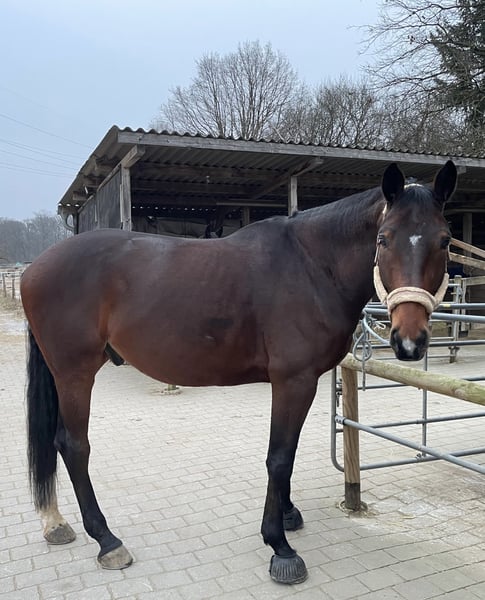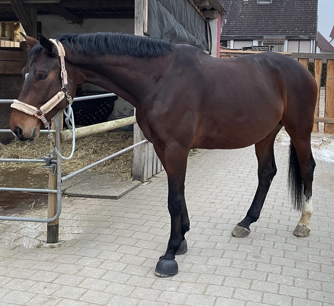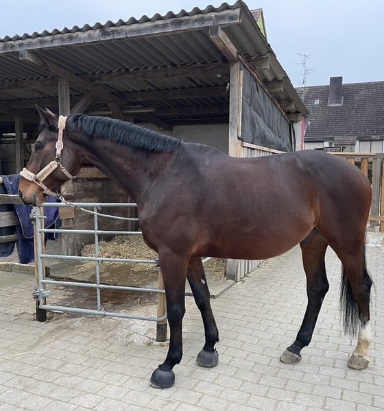 Dieser junge Wallach überzeugt durch sein absolut klares Köpfchen, seine hohe Arbeits- und Lernbereitschaft sowie seine extreme Menschenbezogenheit. Er ist stets bemüht, seinem Menschen zu gefallen, liebt es zu kuscheln und genießt jede Aufmerksamkeit. Aktuell ist er dressurmäßig auf A-Niveau geritten. Im Gelände kennt er das Reiten in der Gruppe, alleine wurde er bisher noch nicht geritten. Dabei zeigt er sich stets brav und aufmerksam. Er wurde beim Züchter angesprungen, das Springen wurde bei mir jedoch nicht weiter verfolgt. In seiner weiteren Ausbildung zeigt sich jedoch sehr deutlich, dass er fürs Springen gezüchtet wurde: viel Übersicht, Vermögen und Freude an der Aufgabe. Daher wünsche ich mir für ihn einen fördernden Springreiter, bei dem er sein Potenzial voll entfalten darf – er ist ein echter Rohdiamant im Springen 💎 Ein ehrliches, sensibles Pferd mit großem Herz, das seinem Menschen viel Freude bereiten möchte. Bei Interesse oder weiteren Fragen stehe ich gerne zur Verfügung. Videos auf Anfrage. Besichtigung und Probereiten nach Vereinbarung möglich. Bitte haben Sie Verständnis dafür, dass wir zur Vermeidung von Reitertourismus eine Probereitgebühr von 40 € berechnen.