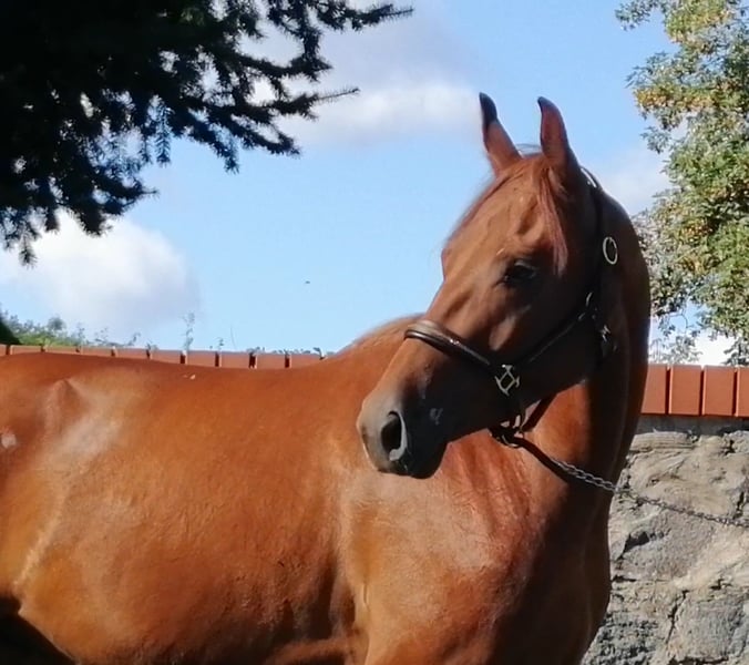 Notre Excalibur SB se présente dans un format pratique XS, mais il a un grand cœur au bon endroit ! Amical, courageux et toujours fidèle à son humain – tel est notre petit bonhomme. Excalibur a été monté tard en 2023 et est en cours de formation supplémentaire à l’Établissement principal et régional de Brandenburg à Neustadt/Dosse. Né et élevé dans une ferme, il est habitué à des machines telles que tracteurs, chargeurs, mini-pelles et même souffleurs à feuilles, qui font partie de son quotidien. Il est curieux et observe tout avec une grande sérénité. La manipulation quotidienne avec les humains lui procure beaucoup de plaisir. Toujours amical, facile à vivre et volontiers preneur d’une friandise. Son paddock se trouvait juste à côté d’une école canine, ce qui lui est devenu une routine absolue. Même les poules du jardin voisin ne posent pas de problème. Notre Excalibur apprécie la compagnie d’autres chevaux et en a été habitué toute sa vie. Il a été compagnon de pâture pour plusieurs hongres, dont un retraité, et il a aussi partagé sa stalle avec de jeunes étalons et des poulinières de un an. Malgré sa taille compacte, il ne se laisse pas faire, mais il fait toujours preuve d’une grande tolérance en protégeant les plus faibles. Son père est le Trakehner PrH Editorial. Editorial a été le réserviste vainqueur lors de la sélection des Trakehners en 2007. Les descendants de ce étalon se distinguent par beaucoup de type, des allures de base supérieures à la moyenne et un très bon caractère. Son demi-frère, Imperio, a connu beaucoup de succès sous la selle de Hubertus Schmidt. Excalibur provient d’une lignée maternelle qui remonte à notre Maika. Les chevaux de cette lignée se distinguent tant en sport qu’en loisir par leur excellent caractère et leur polyvalence. Parmi eux, on peut citer Lord Capri SB (classé en dressage S) ou Sabrina SB (nom de compétition Sabrina-Vera, victorieuse en dressage M**). On peut également mentionner Santano SB, qui a brillé aussi bien en voiture qu’en voltige. Sa sœur cadette, plus grande, est la jument de prämie d’État Belissima SB. Grâce à son fort sang trakehner, mais aussi à son sang complet (Montano - Modus xx), Excalibur possède un type élégant et léger, avec une excellente condition physique pour les longues distances. La boue et autres conditions difficiles ne lui posent pas de problème et ne le dérangent pas.