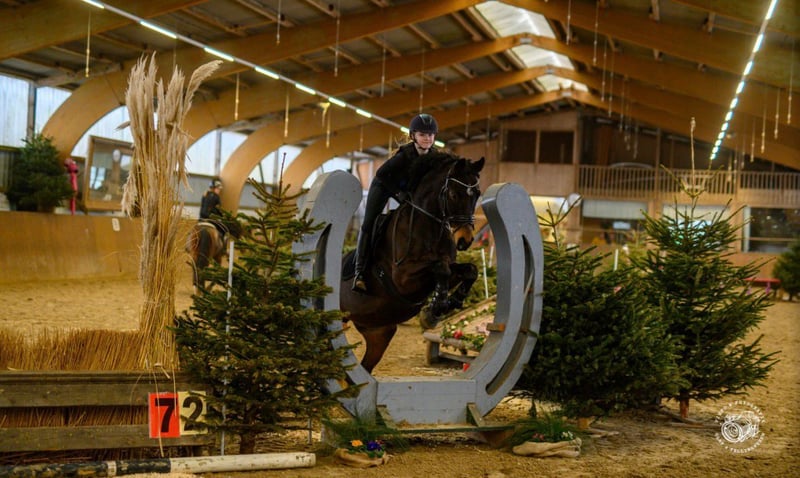 Diefi has been exclusively ridden by a 13-year-old girl and competed in shows over the past year. - Dressage: Level A, including team participation at the Rastede State Horse Show. - Jumping: E/A level, started last year. - Participated in an introductory eventing course. The horse is up-to-date with vaccinations and deworming, physiotherapy was done in January 2026, and teeth were checked in December 2025. Currently, it is shod in front. Temperamentally, Diefi is a laid-back and easygoing horse, straightforward and well-behaved when ridden, not spooky, even at competitions. A true partner for the whole family. At the moment, the horse is stabled at night and spends the day in a paddock with a group of four. It also knows a 24/7 turnout during the summer. A veterinary check can be arranged for serious inquiries.