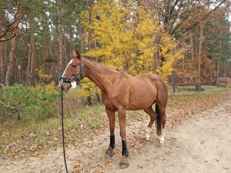 Hallo, suche für meine schöne Traber Stute Hope ein neues Zuhause. Sie ist 8 Jahre alt, 164cm groß und hat einen Charakter aus Gold. Sie ist ranghoch was auch leider der Grund für die Abgabe ist. Da sie mit meiner ersten Stute (halbseitig blind) zu zweit im Paddock steht. Bei der Arbeit braucht sie eine liebevolle, konsequente Hand, zeigt sich aber auch sehr lernbereit, aufgeschlossen und konzentriert. Sie wird aktuell geritten und durch regelmäßige Bodenarbeit und longieren gefördert. Zuletzt hat sie die Freiarbeit kennengelernt (noch nicht so gefestigt). Ich gebe sie als Freizeit- / Familienpferd ab, da sie auch sehr menschenbezogen und verkuschelt ist. Sie ist schmiede-, verladefromm und zeigt sich beim Tierarzt auch brav. Sie ist kerngesund, hat die erste Impfung schon und ist entwurmt. Folgendes Zubehör ist schon im Preis enthalten: - 2x Halfter - 1x Halfter- Kappzaum - 1x Fesselkopfgamaschen - 1x Hufglocken - 1x Regendecke - 1x Outdor-Decke 50g - 1x Outdor-Decke 100g - 1x Fliegendecke - 1x Fliegenmaske - 1x Fliegenhaube Probereiten ist möglich jedoch mit einem Reitpad. Ich bitte nur um ernsthafte Anfragen.