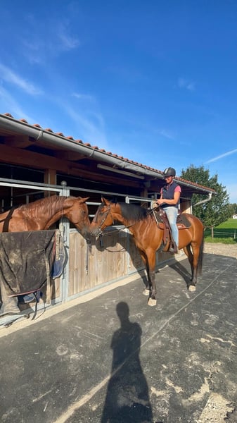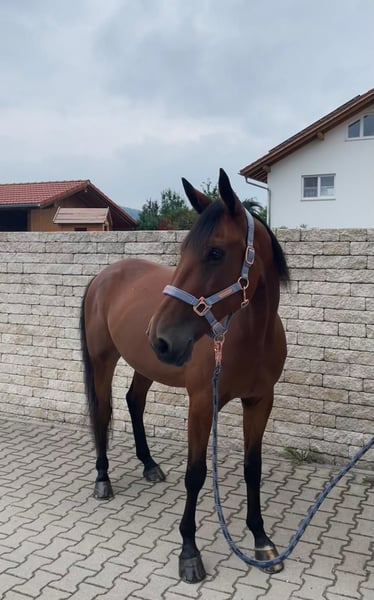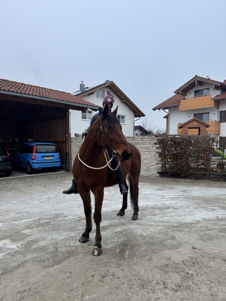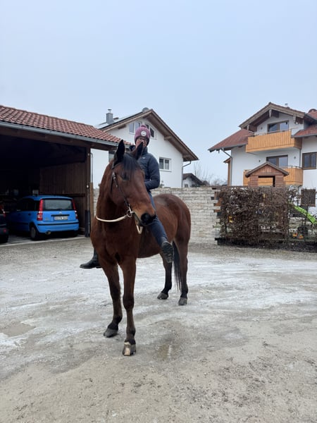 Ich heiße Sancho, Bin ein kompakter, verschmuster Traberwallach. Ich suche meinen Partner, der es liebt mit mir lange Geländeausritte oder Fahren zu erleben. Ich bin mit meiner Reiterin stundenlange Ausritte gewöhnt und genieße es einfach gemütlich unterwegs zu sein. Ich liebe die Bodenarbeit auch sehr, nur das Reiten im Viereck ist mit oft zu langweilig, kenne ich aber auch. Ich kann mittlerweile alle drei Grundgangarten, bin Englisch und Western/Freizeit geritten. Ich bin kerngesund. Bin aus dem Sport gegangen, weil es mir zu schwer wurde. Bin auf allen vieren beschlagen. Bin auch im Umgang sehr unkompliziert und nervenstark. In der Herde rangmittig. Stehe derzeit mit meinen Freunden im Offenstall. Geimpft und gechipt. Keine Händler und Reitschulen. Probereiten kostet 30€. Ich freue mich sehr auf euer Kennenlernen, Euer Sancho.