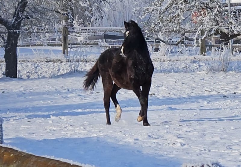 Hf mit allen Möglichkeiten ob Sport oder Freizeit. Sehr Charmanter Hengstanwerter. Aus top Mutterstamm, Mutter selber erfolgreich im Sport mit einer Stutenprüfung im Springen mit 9,5 Rittigkeit mit 9 . Bewegungsnoten auch bis 8.Selber Landesponyschau Siegerin.