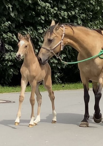 Verkaufe deutsches Reitpony Hengst – Buckskin, geb. 2024 Zum Verkauf steht ein wunderschöner Hengstanwärter mit viel Talent . Seine Bewegungen sind schwungvoll und ausdrucksstark . Mit seinem wunderbaren Charakter ist man sofort von ihm eingenommen . Hier wächst ein tolles Sportponys heran . Seine Mutter ist bereits Hengstmutter und sein Vater Neverland ist international hoch erfolgreich und ein Top Vererber!