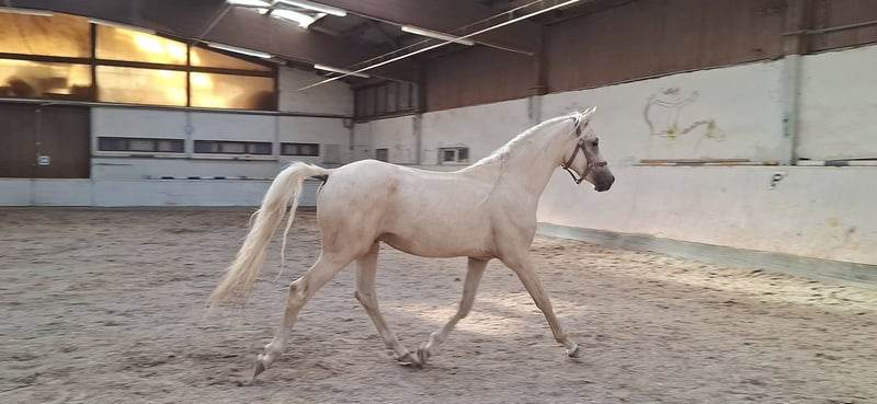 *Keiner vom Filstal* is a 2.5-year-old stallion. He is one of the few offspring of the stallion Dublin. Dublin is a descendant of Donchester, tracing back to Don’t Worry. The stallions are well-known for their strong conformation and temperament. After his first foal crop, Dublin returned to competition and now, at five years old, he successfully competes up to class L. His dam is the state premium mare Reuschbachhofs Jerry Hall. She descends from Molenhorns Pasja. On the dam’s side, there is also the premium mare Reuschbachhofs Julia Stegner, who is already a broodmare and carries in her pedigree names like Golden Rock and Hesseteichs Golden Dream. This is a stallion with a solid pedigree. Through his parentage, a double-licensed young stallion is developing, expected to reach full height. *Keiner*, as we call him, is well-behaved, familiar with farrier and veterinarian, regularly wormed and vaccinated, and herd-friendly. He is a rather shy and subordinate pony, likely to develop into a children’s pony. Keiner is not for sale out of necessity, as the riding therapy facility has enough ponies in the breeding herd. He is neither a distressed sale nor needs to be sold immediately. We prefer to sell him to breeders who recognize his potential and wish to develop him further according to his quality. He is now longeing willingly and shows good cooperation. Viewing the dam is also possible. Update: He is being prepared for licensing with gentle training. The price will be adjusted accordingly.