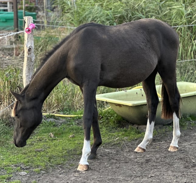 Hello, I am offering my beautiful and very well-behaved stallion for sale. He is very calm and gentle in handling. I have taken him on trailer rides several times, which works very well. Leading and grooming are also no problem. He was born in June 2024. He is also very calm when with the farrier. I could imagine him later being suitable for children, as he already has a very relaxed temperament. If you have any questions, please feel free to contact me. I am happy to send videos via WhatsApp. Best regards