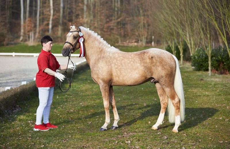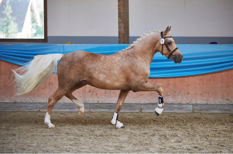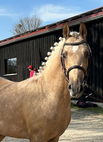 Guillaume wurde am 17.6. 2022 geboren. Trotz seines jungen Alters, besticht er jetzt schon über genügend Hengstausdruck . Er ist groß gewachsen und wird das Endmaß erreichen. Darüber hinaus, ist er ganz korrekt gebaut und verfügt über 3 überdurchschnittliche Grundgangarten , die jeden Tag besser werden. Auf der Fohlenschau erhielt er die Goldprämie , wobei die Grundgangarten und der Typ besonders hervorgehoben wurden. Seine Mutter Normandie hat ihre SLP erfolgreich absolviert und hat den Staatsprämientitel. Ihre Vollschwester ist in Amerika bis zur Klasse S Dressur siegreich . Aus der Mutterlinie sind sehr erfolgreiche Sportponys hervorgegangen . Die Großmutter Visa ,ist Vollschwester der Hengste Schiwago (S Dressur) Sydney und Santiago und den Ausnahmestute Veronika . Guillaume wurde gekört und bekam die Prämie. Videos auf Anfrage. Die gemachte Angaben sind unverbindliche Beschreibungen und stellen keine zugesicherten Eigenschaften dar. Der Verkäufer haftet nicht für Irrtümer, Eingabefehler und Datenübermittlungsfehler