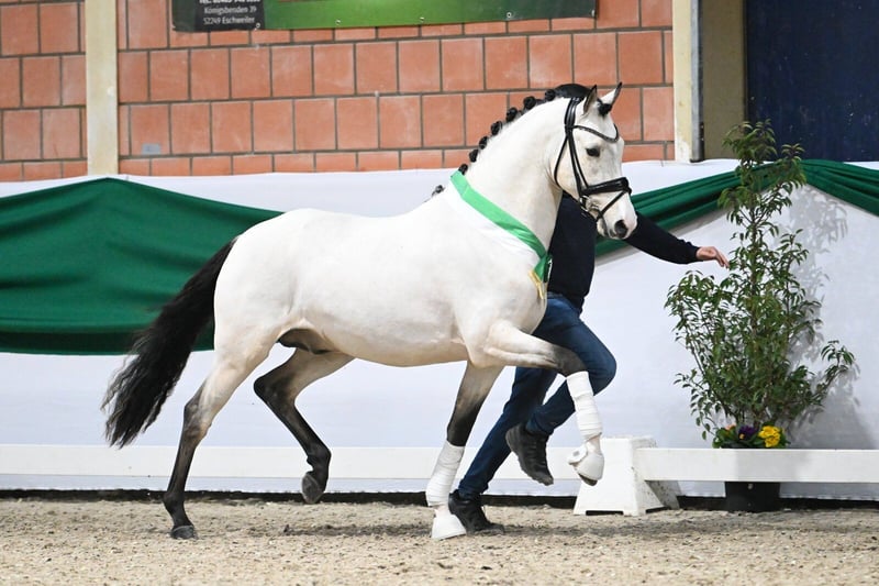 Zum Verkauf steht mit Assenmachers C’est Spéciale alias Carlos ein außergewöhnlich sympathischer und talentierter Reitponyhengst aus eigener Zucht. 1. Reservesieger Rheinland, Reitpferdeprüfung hoch platziert, zweimalig zum Bundeschampionat qualifiziert! Dieses Pony vereint Rittigkeit, Qualität und einen außergewöhnlich guten Charakter – Eigenschaften, die ihn zu einem idealen Partner für Sport und Familie machen. Carlos ist absolut unkompliziert im Umgang und zeigt trotz Hengststatus keinerlei hengstiges Verhalten. Er ist sehr brav im täglichen Handling, freundlich zu Menschen und besitzt eine bemerkenswerte Gelassenheit. Auch in neuen Situationen bleibt er cool, aufmerksam und zuverlässig. Unter dem Sattel präsentiert er sich rittig, arbeitswillig und immer bemüht, seinem Reiter zu gefallen. Besonders hervorzuheben ist sein ausgeglichenes Temperament, wodurch er sich auch hervorragend für Kinder und Jugendliche eignet. Es ist problemlos möglich, Kinder auf ihm reiten zu lassen – er bleibt stets ehrlich und verlässlich. Neben seiner tollen Einstellung überzeugt er mit drei überdurchschnittlichen Grundgangarten: • Schritt: taktsicher und raumgreifend • Trab: elastisch mit guter Schulterfreiheit • Galopp: bergauf gesprungen und sehr angenehm zu sitzen Auch Ausritte ins Gelände machen ihm großen Spaß, dabei zeigt er sich stets gelassen und nervenstark. Durch seine moderne Reitponyqualität, seine sportlichen Möglichkeiten und seine attraktive Farbe ist er sowohl für Dressursport, Familienanschluss als auch für die Zucht ein äußerst interessantes Pony. Ein Pony mit Herz, Qualität und Charakter – ein echter Partner fürs Leben.