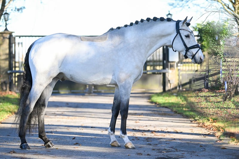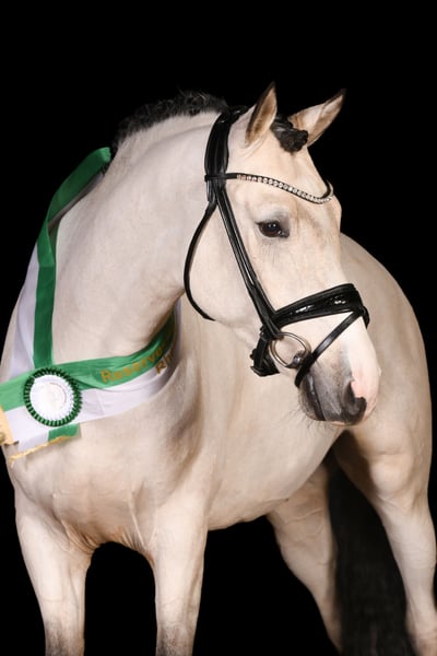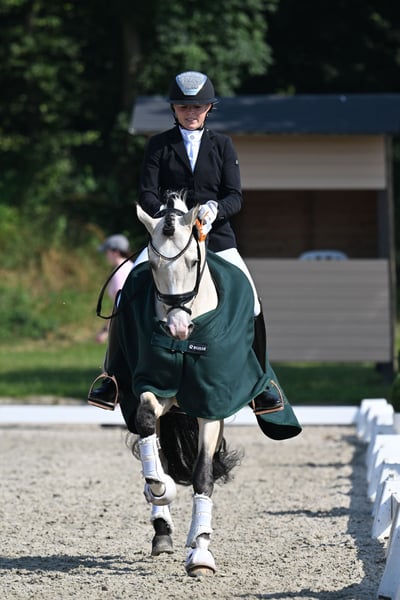 For sale is Assenmachers C’est Spéciale, affectionately known as Carlos, an exceptionally charming and talented show pony stallion from our own breeding. He was Reserve Champion in Rhineland, placed highly in dressage tests, and has qualified twice for the Bundeschampionat! This pony combines rideability, quality, and an outstanding temperament—traits that make him an ideal partner for sport and family life. Carlos is very easy to handle and shows no stallion-like behavior despite his stallion status. He is very well-behaved in daily handling, friendly towards people, and possesses a remarkable calmness. Even in new situations, he remains relaxed, attentive, and reliable. Under saddle, he is rideable, eager to work, and always strives to please his rider. His balanced temperament makes him especially suitable for children and young riders. It is easy to have children ride him—he remains honest and dependable at all times. In addition to his excellent attitude, he impresses with three above-average basic gaits: • Walk: steady and ground-covering • Trot: elastic with good shoulder freedom • Canter: uphill and very comfortable to sit He also enjoys outings in the terrain, consistently showing calmness and nerves of steel. Thanks to his modern show pony quality, sporting potential, and attractive color, he is a highly interesting pony for dressage, family riding, and breeding. A pony with heart, quality, and character—a true life partner.