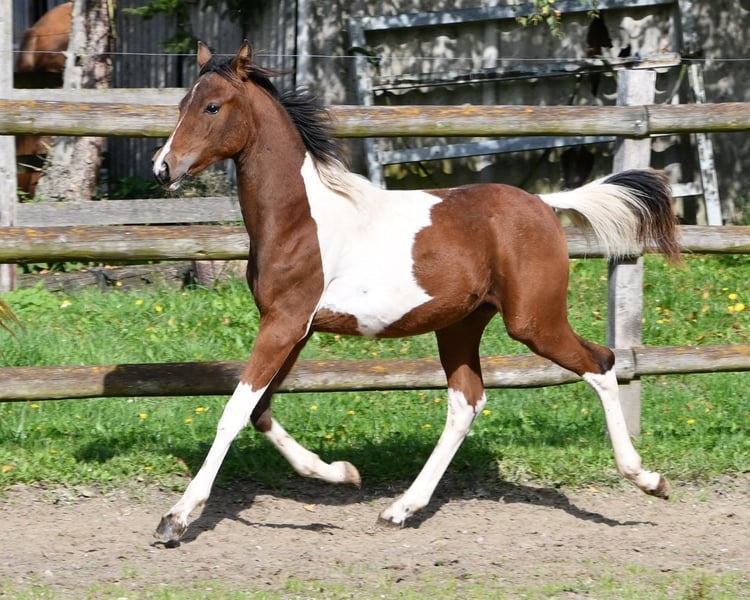 To źrebię ogierka nie tylko wyróżnia się kolorem i jest piękne, ale także ma absolutnie wymarzoną osobowość. Jest towarzyskie, ufne i łatwe do wychowania, co sprawia, że nie pozostawia żadnych życzeń niespełnionych. Jego matka to klacz premiowana, a ojciec to nawet ogier hodowlany, a jego 2-letnia pełna siostra również jest dostępna do obejrzenia. Starszy pełny brat jest nawet ogierem z licencją. Jesteśmy bardzo szczęśliwi, jeśli mały po prostu stanie się koniem rodzinnym, niezależnie od tego, czy będzie to tylko koń do rekreacji, czy z ambicjami sportowymi. Ostatnie zdjęcia pokazują matkę i ojca.
