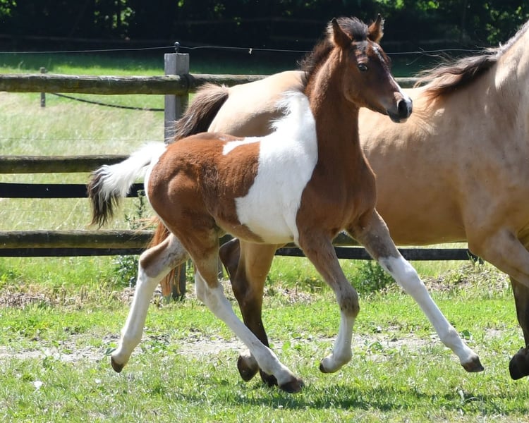 Dieses Hengstfohlen ist nicht nur farblich besonders und auch sonst bildschön sondern charakterlich ein absolutes Traumpferdchen. Menschenbezogen, zutraulich und einfach zu erziehen lässt er wirklich keine Wünsche offen. Seine Mutter ist Prämienstute und sein Vater sogar Leistungshengst und seine 2j. Vollschwester kann auch besichtigt werden. Ein älterer Vollbruder ist sogar gekört. Wobei wir total happy sind wenn der kleine einfach nur Familienpferd wird, egal ob nur Freizeit oder mit sportlichen Ambitionen. Die ersten Fotos sind ganz aktuell von Oktober 2025, danach ist Khaleo beim Musterungstermin zu sehen, dort wurde er hoch prämiert, die nächsten Bilder zeigen ihn wenige Tage alt und die letzten Bilder zeigen Mutter und Vater.
