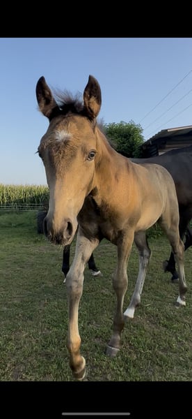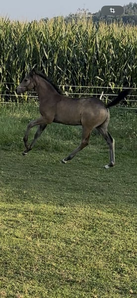 ⭐️Absolut nur in wertschätzende, fördernde und familiäre Hände zu verkaufen. Es ist kein Notverkauf und er soll auch kein Wanderpokal werden.⭐️ „Gentleman Jack“ ist ein am 01.06.2025 geborenes Hengstfohlen vom Erfolgsgarant „Gold Garant NRW“, welcher deutschlandweit bereits zahlreiche Sieger- und Auktionsfohlen gestellt hat. Die Mutter von „Gentleman Jack“ stammt ab vom Elitehengst Halifax, der vor allem für seine vielseitigen Nachkommen in allen Disziplinen und sein herausragendes Temperament bekannt ist. Zudem konnte sie erst kürzlich die Elitestutenschau beim Ponyverband Hessen gewinnen. Bereits jetzt zeigt der kleine, selbstbewusste und unerschrockene Mann, welches Potenzial seiner Eltern in ihm steckt. Ausgestattet mit 3 mehr als hervorragenden, elastischen, bergauf konstruierten Grundgangarten, mit unheimlich viel Typ und Präsenz, wurde er auf der Fohlenschau mit der Fohlenprämie (gold) ausgezeichnet. „Gentleman Jack“ kann bereits alles, was ein Fohlen können muss. Er ist halfterführig, schmiede- und verladefromm, lässt sich putzen und überall anfassen. Selbstverständlich wird er regelmäßig entwurmt und dem Schmied vorgestellt. Es handelt sich hier um keine Massenzucht und -aufzucht, im Gegenteil es wird ganz viel Geduld und Herz investiert und demnach wird er auch nicht zu den leider aktuell kursierenden „Dumpingpreisen“ abgegeben. Eine Kranken- und Lebensversicherung von der „Agria Tierversicherung“ könnte mit übernommen werden. Seine Qualität und Genetik sprechen für sich, dementsprechend auch definitiv ein Kandidat für die Körung. Wer den kleinen Mann kennenlernen möchte ist gern willkommen.