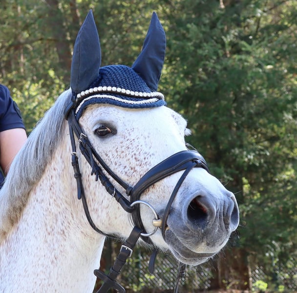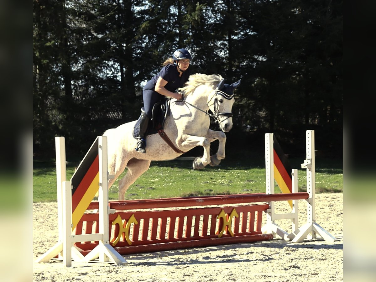 For sale is our charming and talented show jumping pony mare, Tine. This 10-year-old grey mare is measured at 1.48 meters and is sired by Del Piero, out of a mare by St. Annens Monsieur N. Tine offers excellent potential for show jumping and is immediately ready to compete in competitions. Tine is well-behaved, motivated, and very eager to work. She has good basic gaits, is quick to learn, and demonstrates her great strength in jumping. She is always brave, honest, and possesses a good overview. Currently, she is confidently trained up to A* level. She has competed twice, earning ribbons both times. In her two starts in E-Jumping, Tine was placed both times. However, her true potential is much higher, as she particularly shows in free jumping. She is also confidently trained in dressage up to A level, with initial lessons at L level. In the terrain, she also proves to be well-behaved and motivated, making her suitable for eventing as well. Her remarkable nerves and versatility have been demonstrated multiple times: A highlight is her participation with the Lower Saxony show pony quadrille, with performances at CHIO Aachen, Hamburger Derby, and other major events. Trail riding or day trips to the mudflats, forest, or meadows with Tine are no problem. She can be ridden from any position without issues. She completed a calm walk-only ride for the Christmas party, with two riders on her. In handling, Tine is uncomplicated, easy to load, and farrier-friendly, and she is typical of a pony—sometimes a bit cheeky, but always charming. Tine is not an beginner pony; she requires a confident, consistent rider. With further training, she can become a top pony! We wish for her a loving, supportive home, ideally with a focus on jumping. Sale only to private individuals. Accessories can be purchased additionally. Note on trial riding: To prevent riding tourism and in the interest of animal welfare, we charge a fee of €50 for trial rides. This fee will of course be deducted from the purchase price if she is subsequently bought.