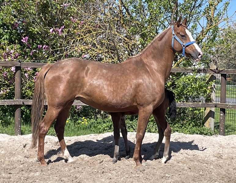 We hereby offer our 2014-born VprSt Bodethals Red Rubina. Rubina has been ridden as a young mare and is performance-tested. She is a great mother. From her maternal line, there are several internationally successful dressage and show jumping ponies. Sale due to breeding only to verifiably very good hands.
